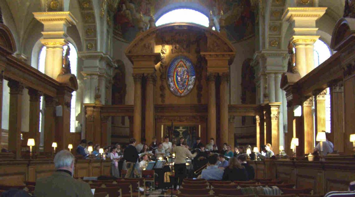 Rehearsing at the Church of St Brides, Fleet Street, London. Photo by Christopher Best